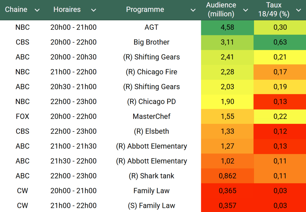 Voici les audiences de la soirée du 17 Septembre