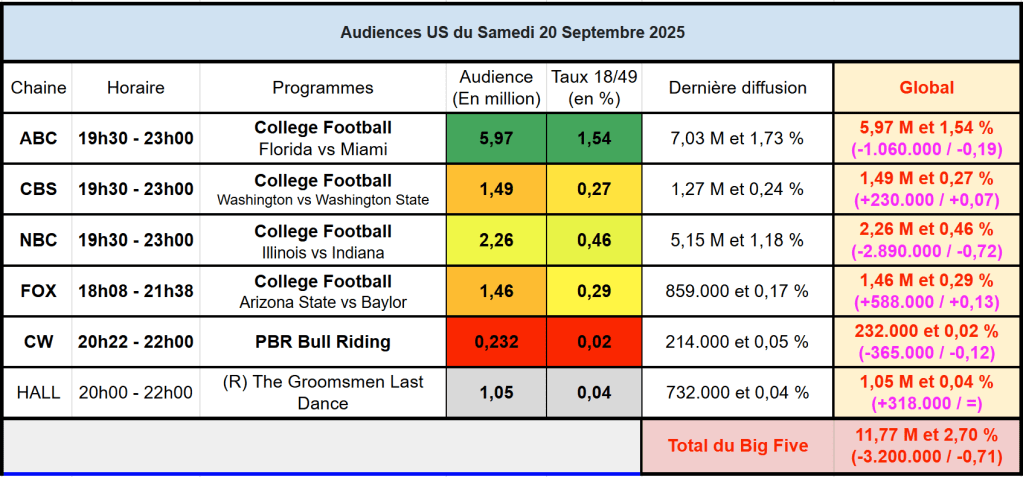 Voici les audiences de la soirée du 20 Septembre