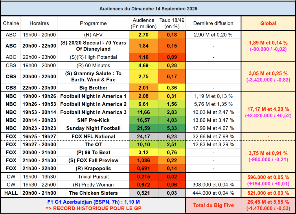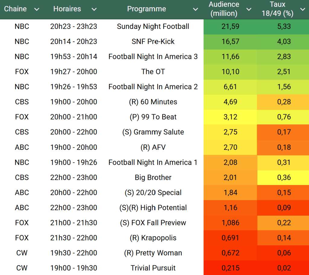 Voici les audiences de la soirée du 21 Septembre