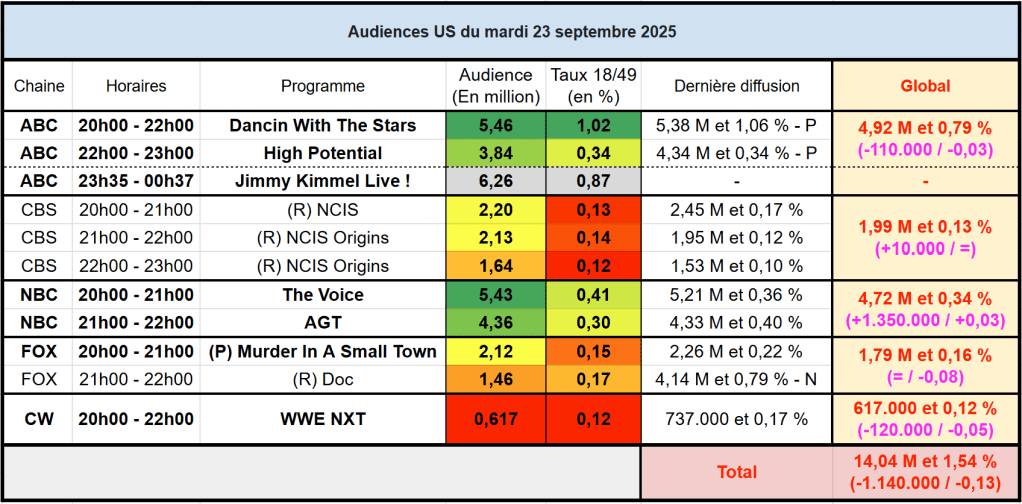 Voici les audiences de la soirée du 23 Septembre