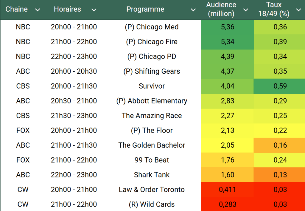 Voici les audiences de la soirée du 1er Octobre