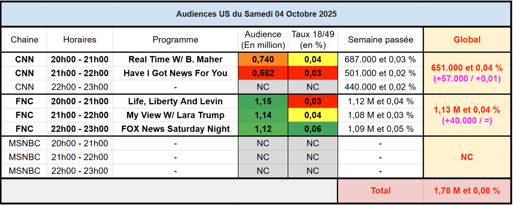 Audiences des chaines infos : FOX News leader en très légère progression. Bonne soirée (20h/22h) pour CNN