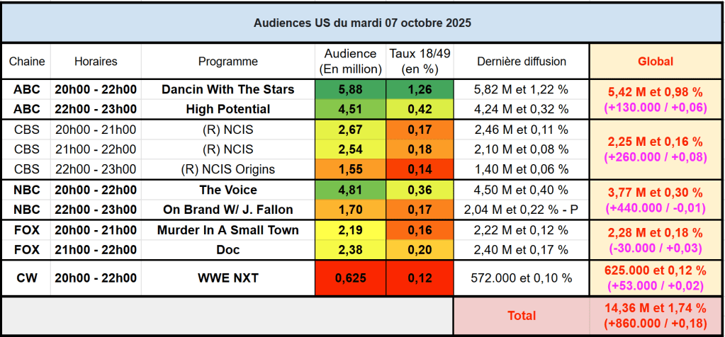 Voici les audiences de la soirée du 7 Octobre