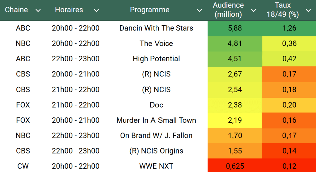 - Hors Premiere et Finale, c’est un record sur cible depuis le 21 Novembre 2016 = Record depuis 9 ans ! (Premiere S29 devant)