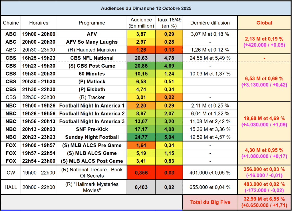 Voici les audiences de la soirée du 12 Octobre