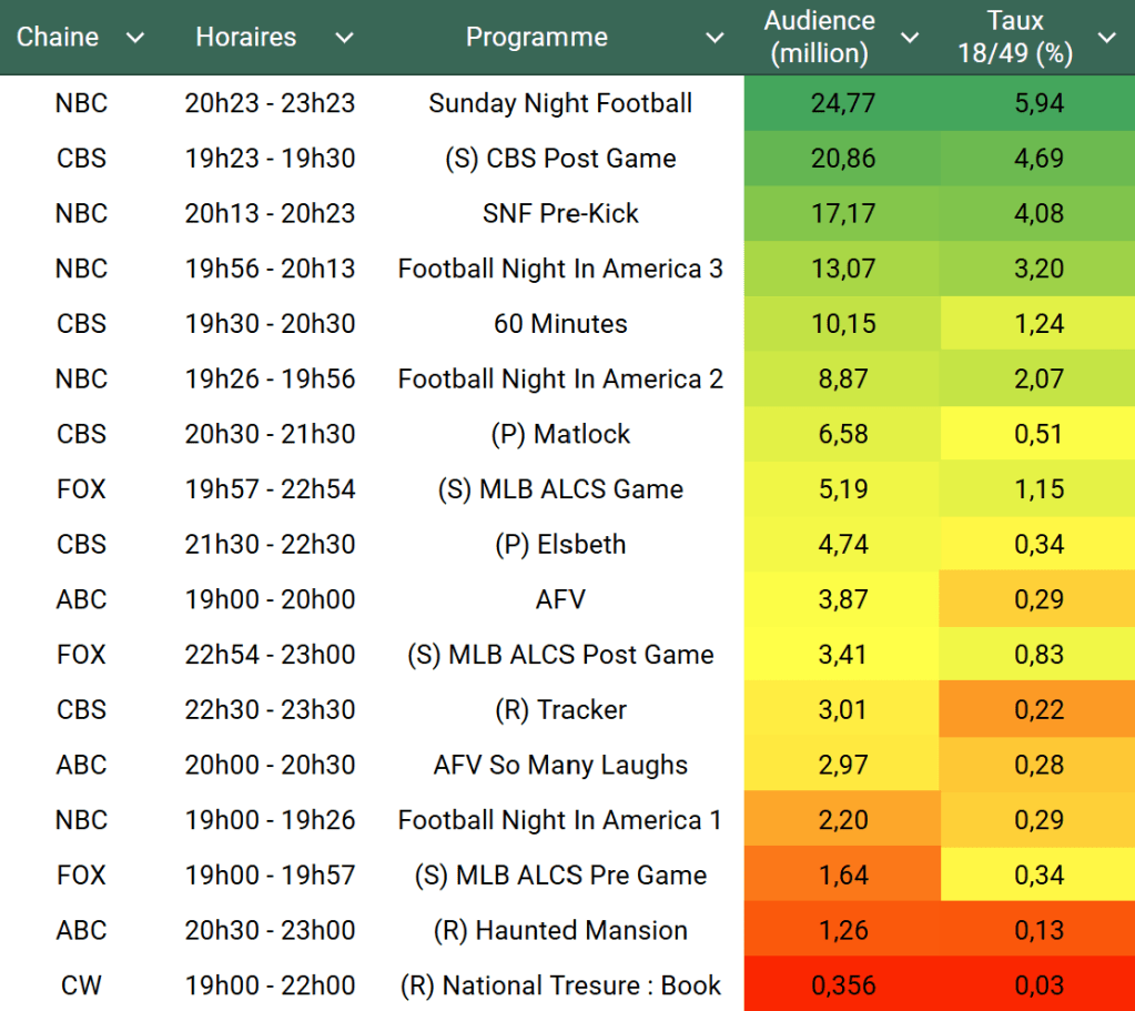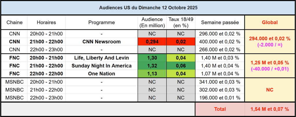 Audiences des chaines infos : Sunday Night In America domine la soirée.