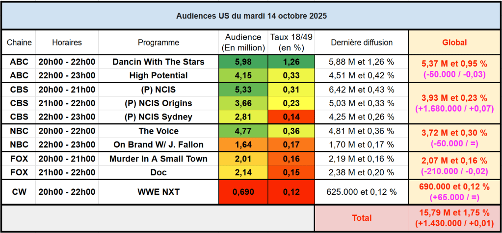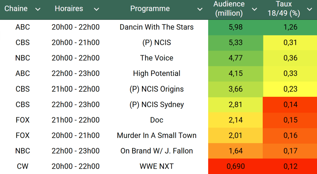 - Hors Premiere et Finale, c’est un record sur cible depuis le 21 Novembre 2016 = Record depuis 9 ans ! (Premiere S29 et Finale S23 devant)