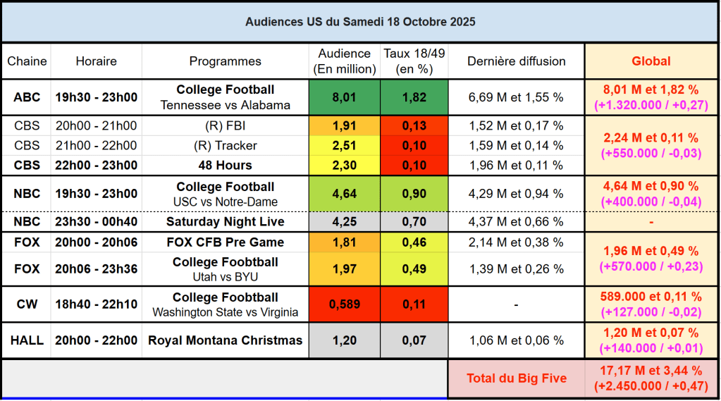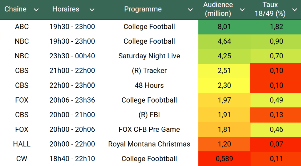 Voici les audiences de la soirée du 18 Octobre