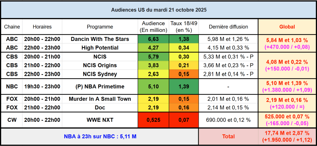 Voici les audiences de la soirée du 21 Octobre