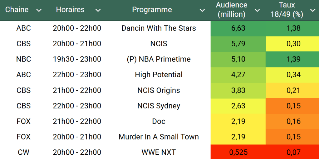 - Pour une émission d’automne à la télévisons US, c’est la première fois qu’un programme progresse 5 semaines consécutives après son lancement depuis 1991 !!