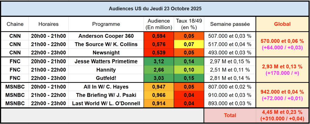 Audiences des chaines infos : Toutes les chaines infos progressent. FOX News toujours intouchable, dans une autre dimension par rapport aux deux autres.