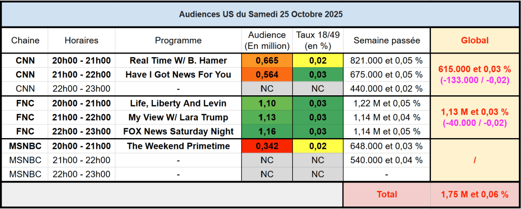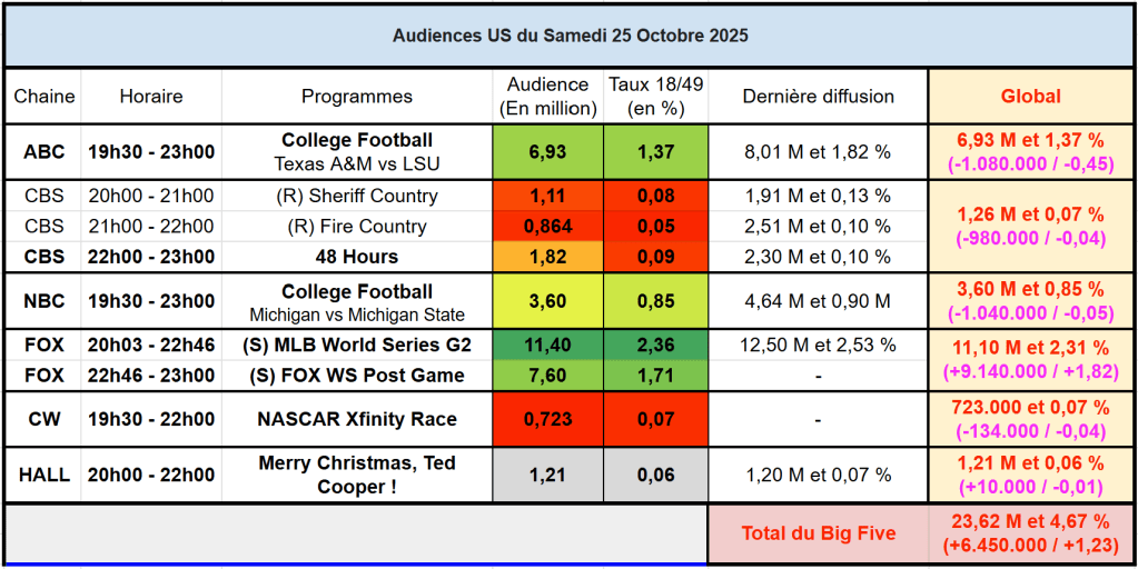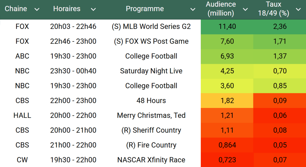 Voici les audiences de la soirée du 25 Octobre