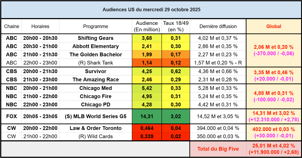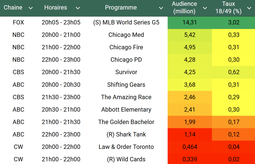 Voici les audiences de la soirée du 29 Octobre