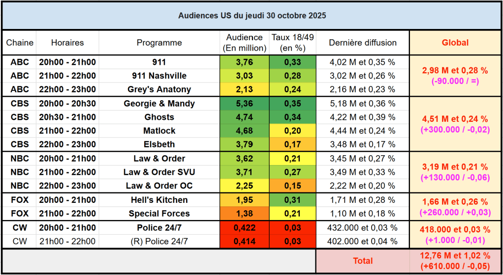 Voici les audiences de la soirée du 30 Octobre