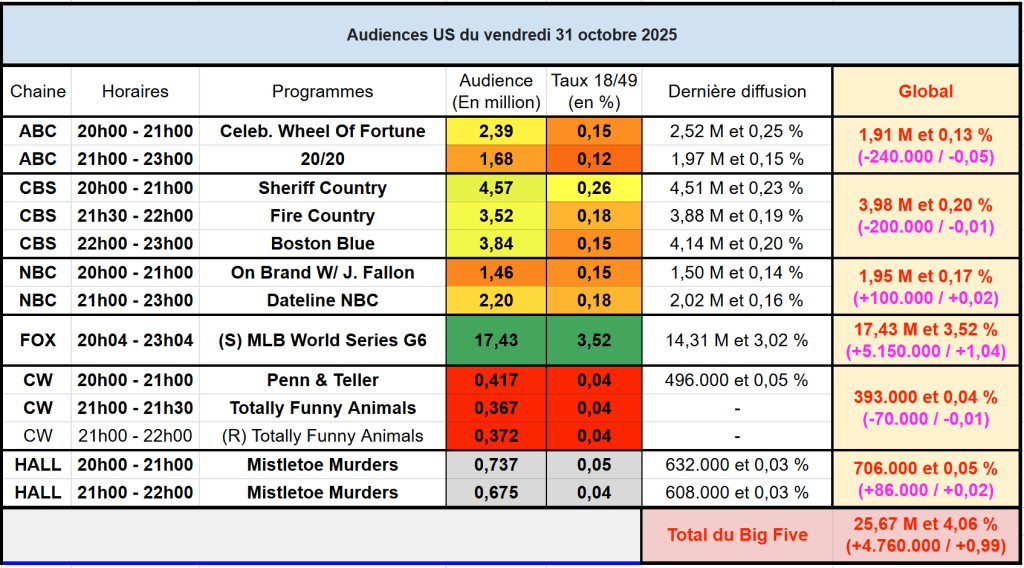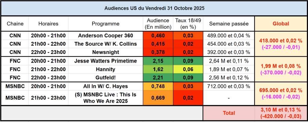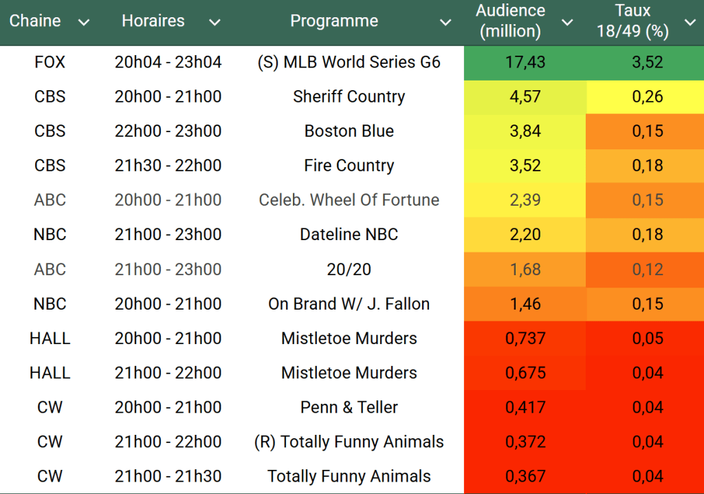 Audiences des chaines infos : Chez les chaines infos aussi on souffre de Halloween et des World Series.