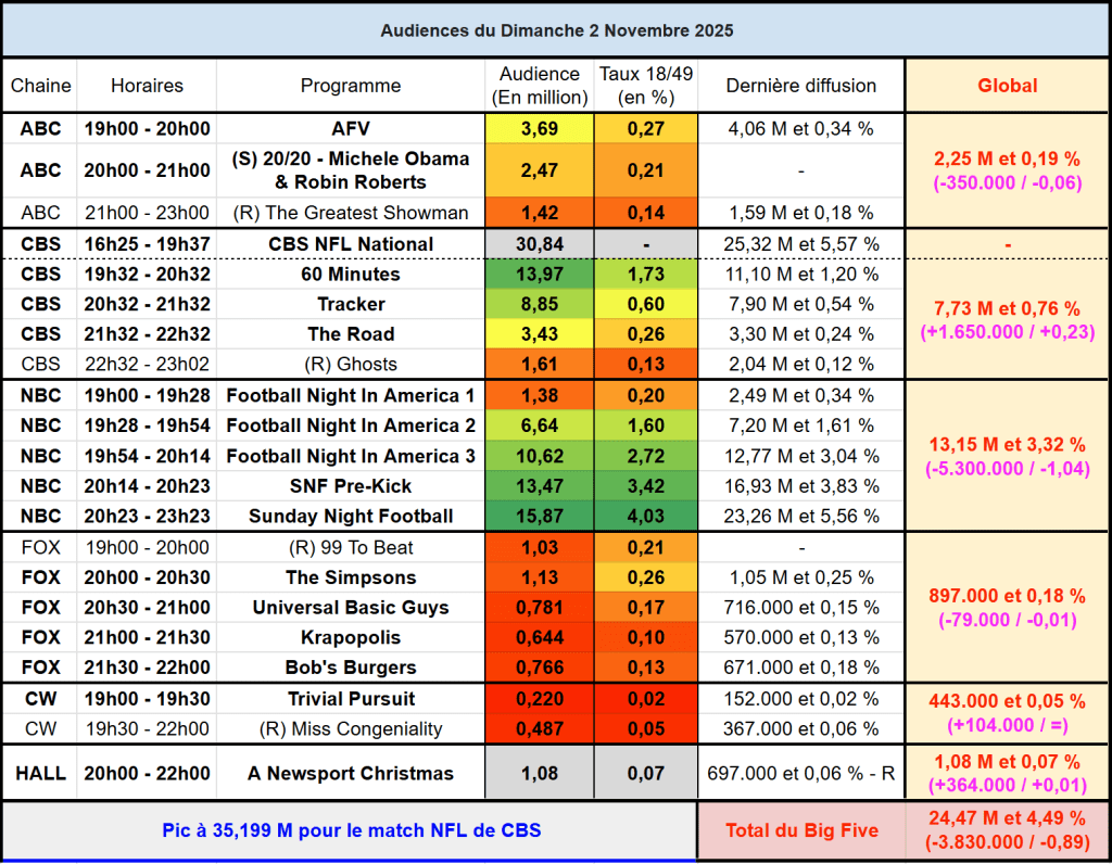 - Meilleure audience NFL sur CBS en semaine 9 depuis 2007