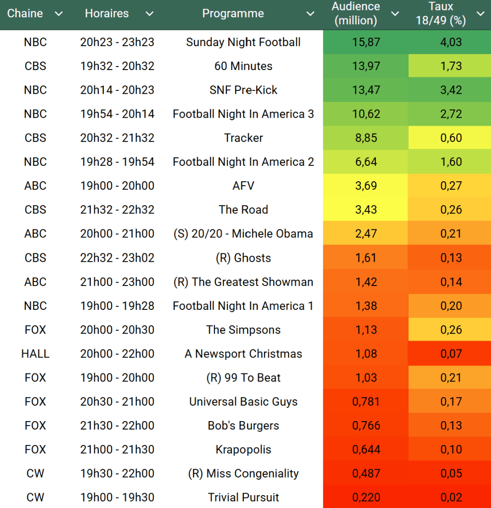 - Depuis le 01.01.23, c’est la 5e pire audience pour Sunday Night Football