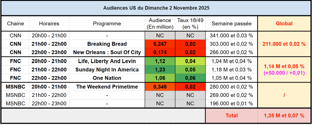 Voici les audiences de la soirée du 2 Novembre