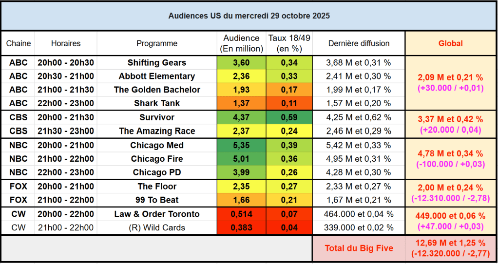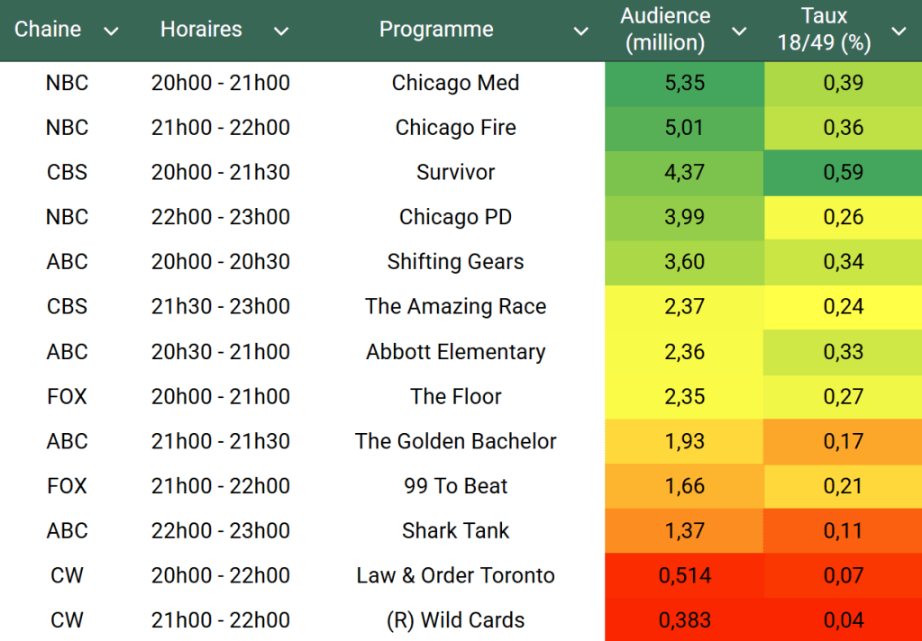 Voici les audiences de la soirée du 5 Novembre