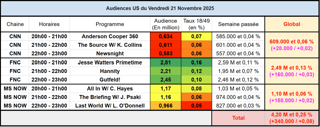 Audiences des chaines infos : Toutes les chaines infos en hausse et en bonne forme pour une vendredi.