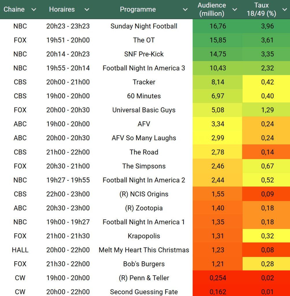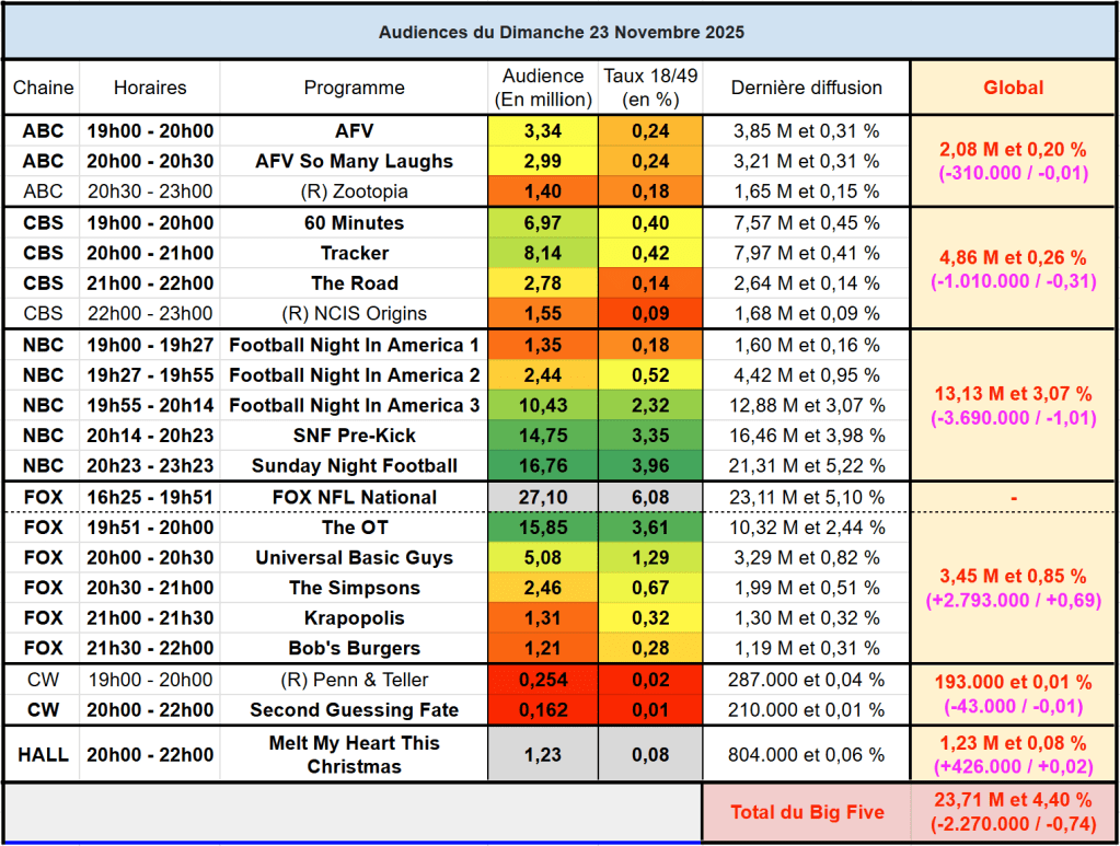 Voici les audiences de la soirée du 23 Novembre