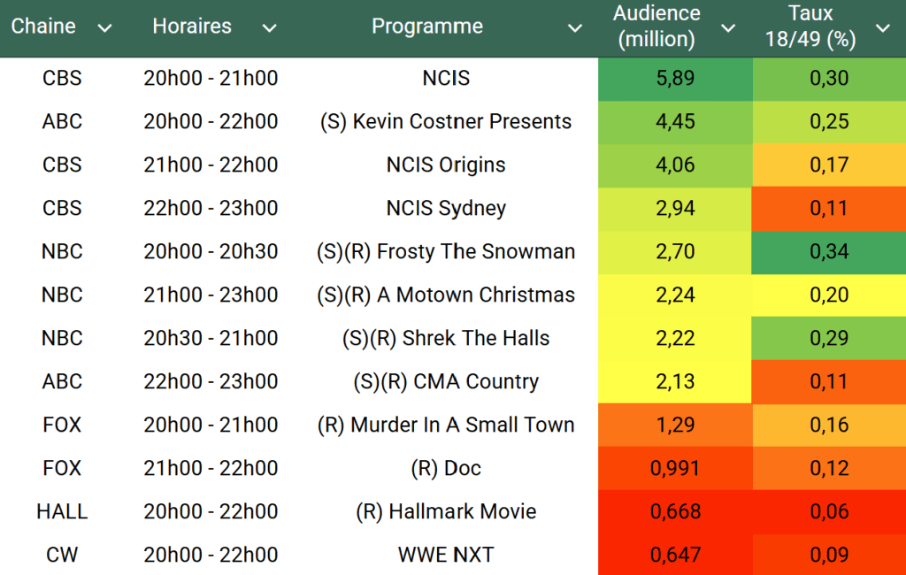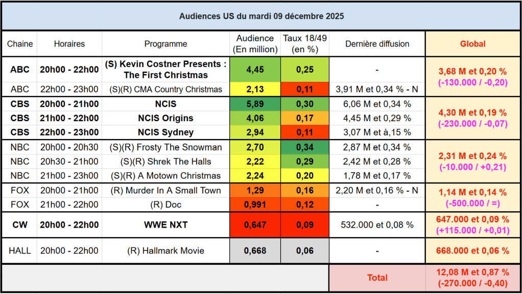 Voici les audiences de la soirée du 9 Décembre