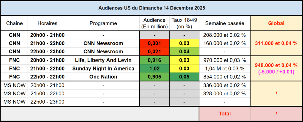 Audiences des chaines infos : FOX News large leader (sur le peu d’audiences dispos)