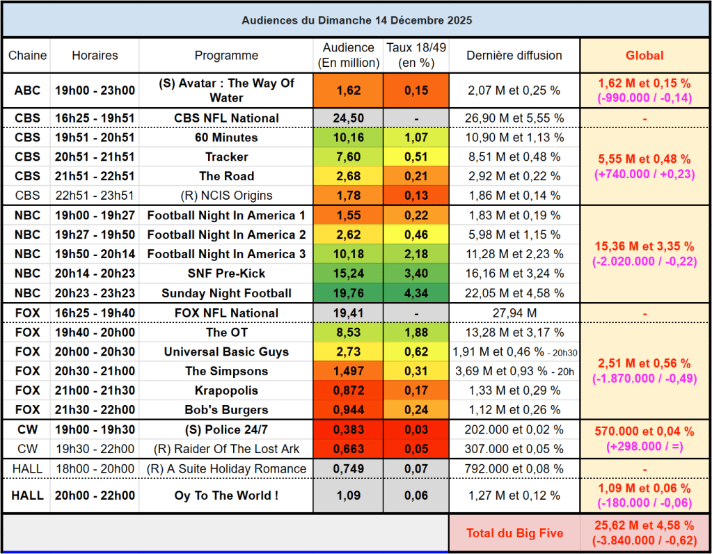 Voici les audiences de la soirée du 14 Décembre