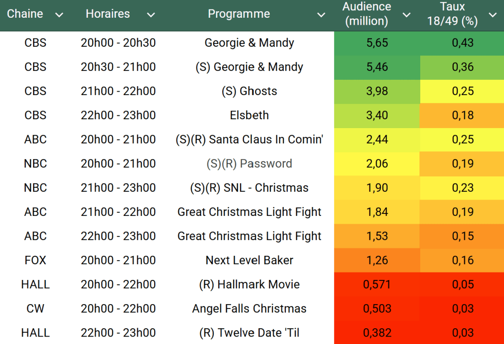 Voici les audiences de la soirée du 18 Décembre