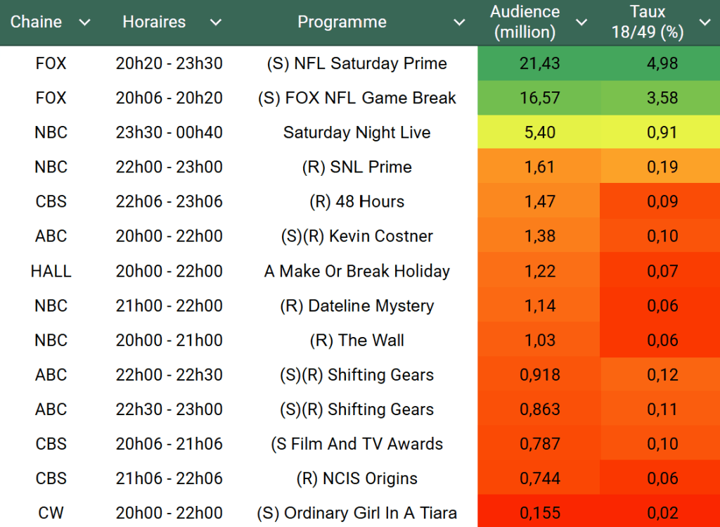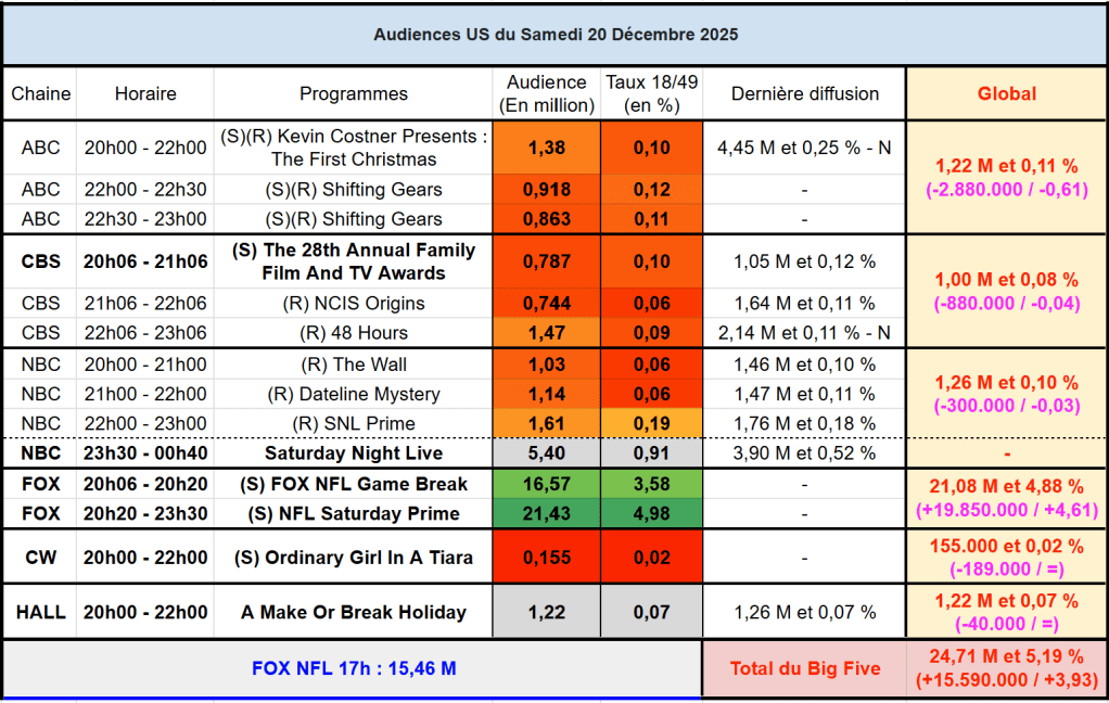 Voici les audiences de la soirée du 20 Décembre
