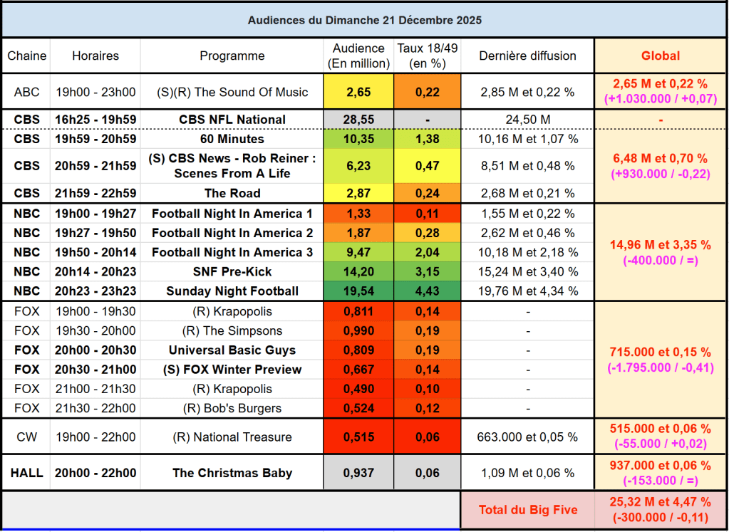 Voici les audiences de la soirée du 21 Décembre