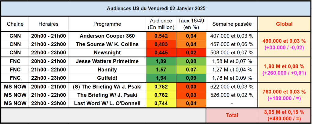 Audiences des chaines infos : Toutes les chaines infos progressent sur une semaine.