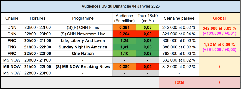 Audiences des chaines infos : CNN progresse. FOX News en forte hausse sur une semaine, toutes ses émissions repassent la barre du million.